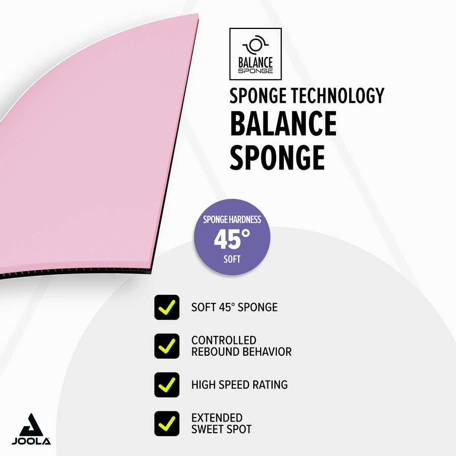 The medium-hard 45° BALANCE sponge forms the foundation for especially controlled rebound behavior and high control values. At the same time, the very lively ENHANCED TRACTION topsheet always gives you the opportunity to switch to offense and accelerate the ball effectively. The new SWEETZONE technology provides the player with a pleasant ball feedback and enlarges the optimal hitting area on the rubber. As a result, the rubber is overall very easy to play and delivers great playing enjoyment.