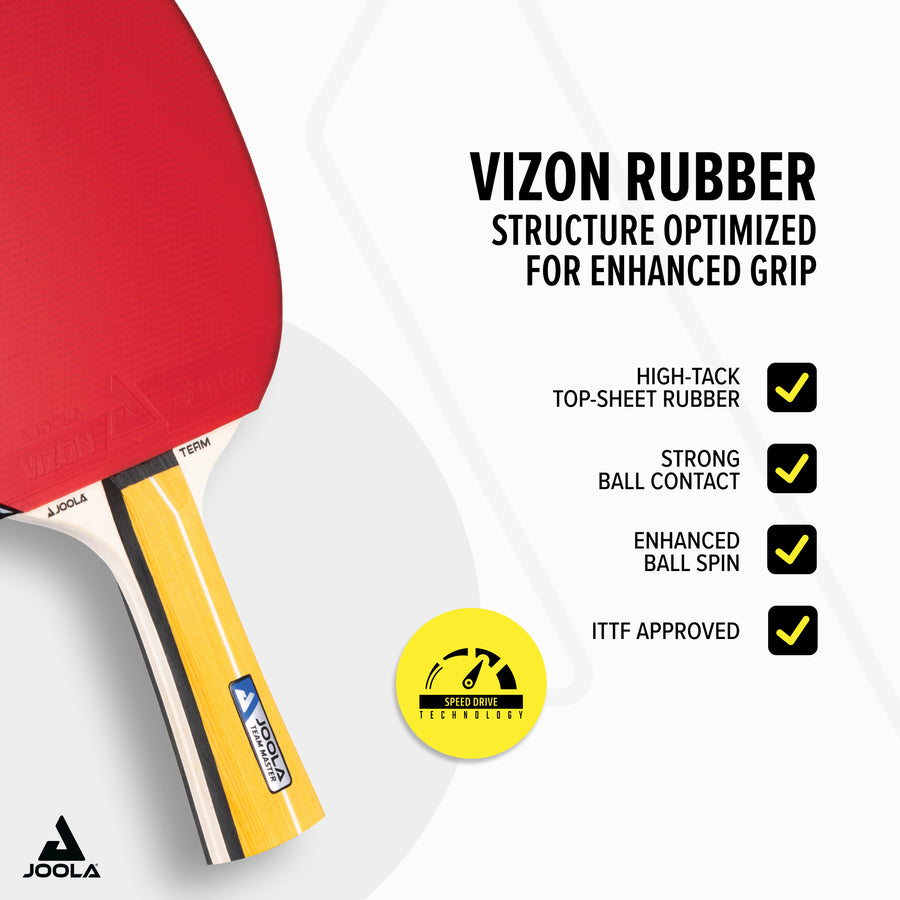- ITTF-approved JOOLA Vizon rubbers: These fast competition rubbers are ideal for offensive strokes and provide maximum spin to elevate your game to the next level.