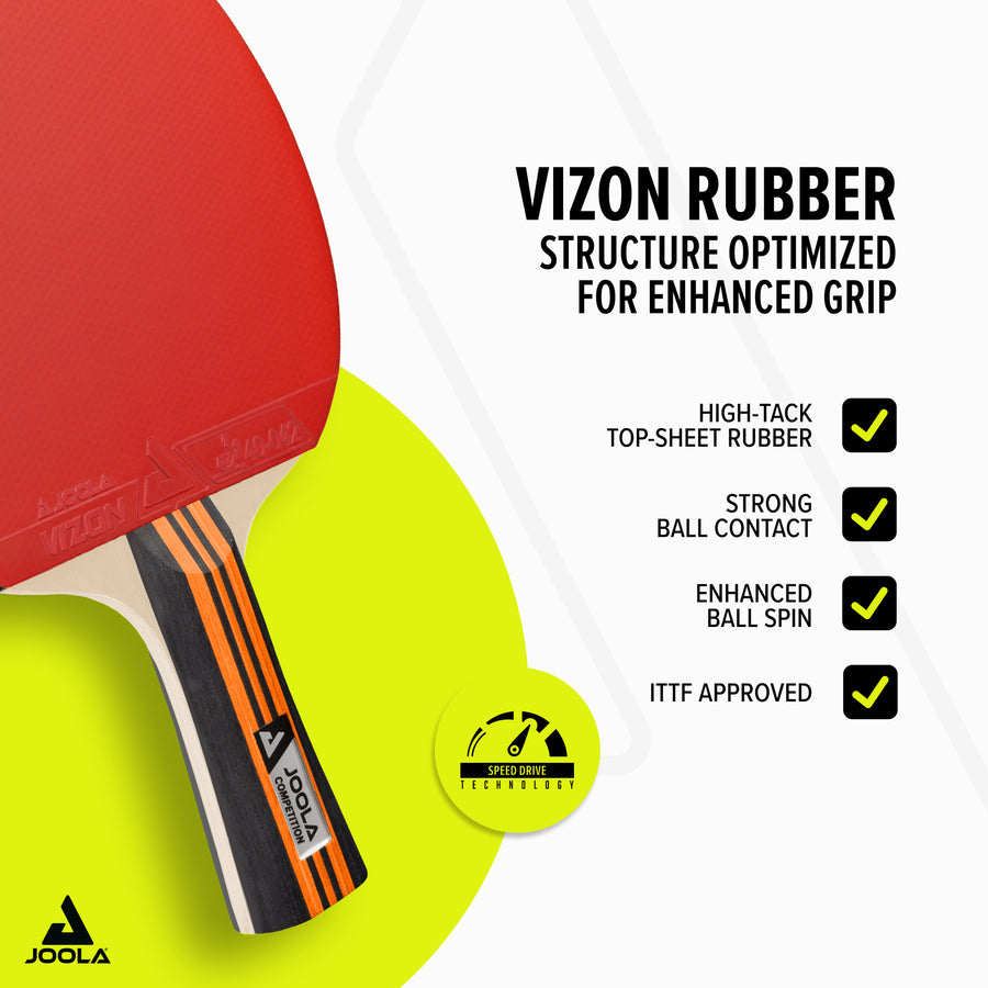 - ITTF-approved VIZON rubbers: These premium rubbers provide maximum ball spin and acceleration, ideal for offensive play.