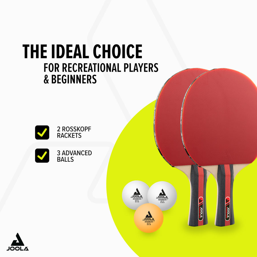 - Comprehensive set: The ROSSKOPF set includes two table tennis paddles and three JOOLA Advanced Training*** balls, so you can start playing right away.