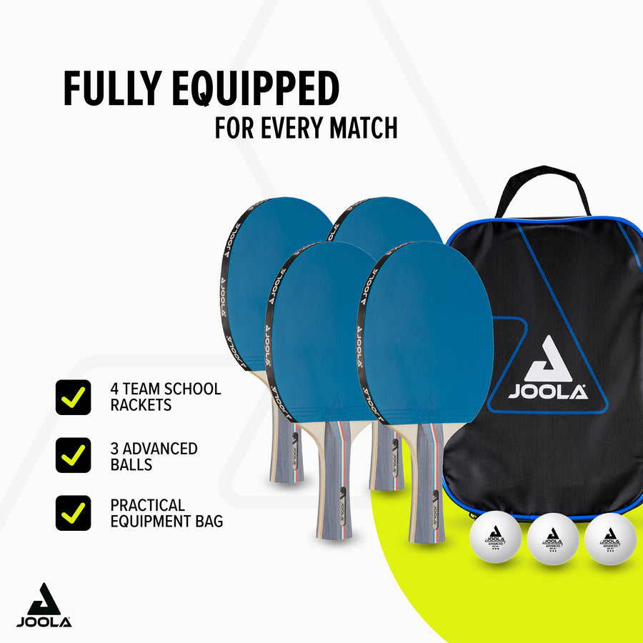 With the JOOLA Team School FR table tennis set, you play in style! High-quality materials, great design, and a practical carrying case make it the perfect companion for every table tennis match.