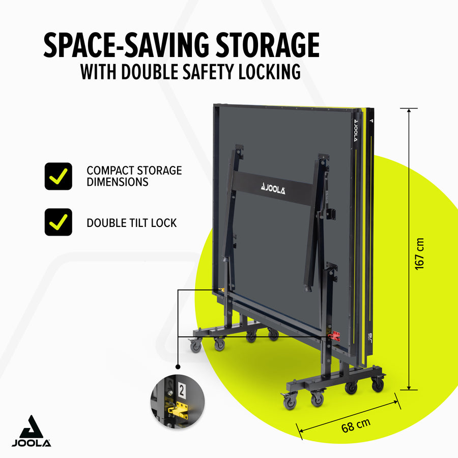 The bestseller JOOLA Inside J18 is the perfect table tennis table for hobby players and, thanks to its anthracite-coloured, 18 mm thick playing surface, is excellently suited for club and school sports. With a solid construction and well-thought-out features, this table offers optimal playing conditions for all table tennis enthusiasts.