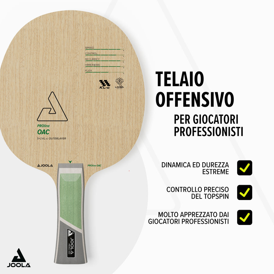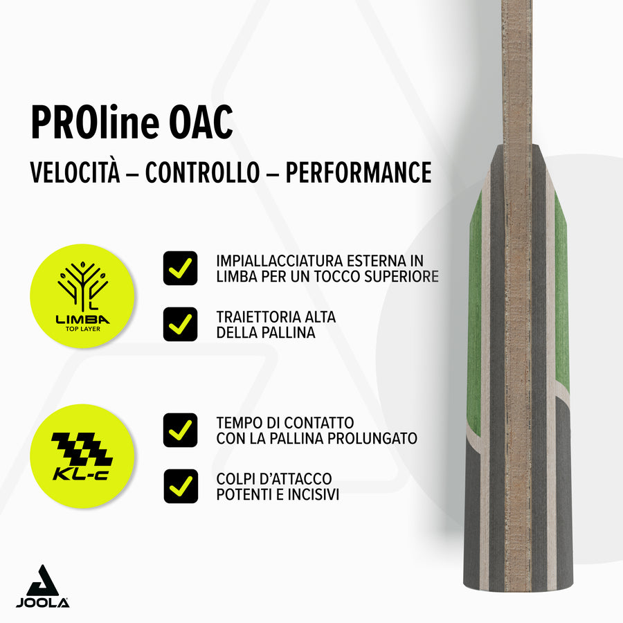 The PROline OAC is no off-the-shelf blade – it is a precisely tuned power package for ambitious offensive players who value speed and control. Many JOOLA professionals rely on this blade – and you will immediately understand why.