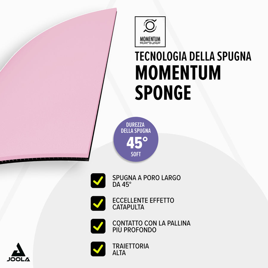 Effetto catapulta: La spugna MOMENTUM a pori grandi permette alla palla di penetrare profondamente al momento dell'impatto per poi accelerarla notevolmente