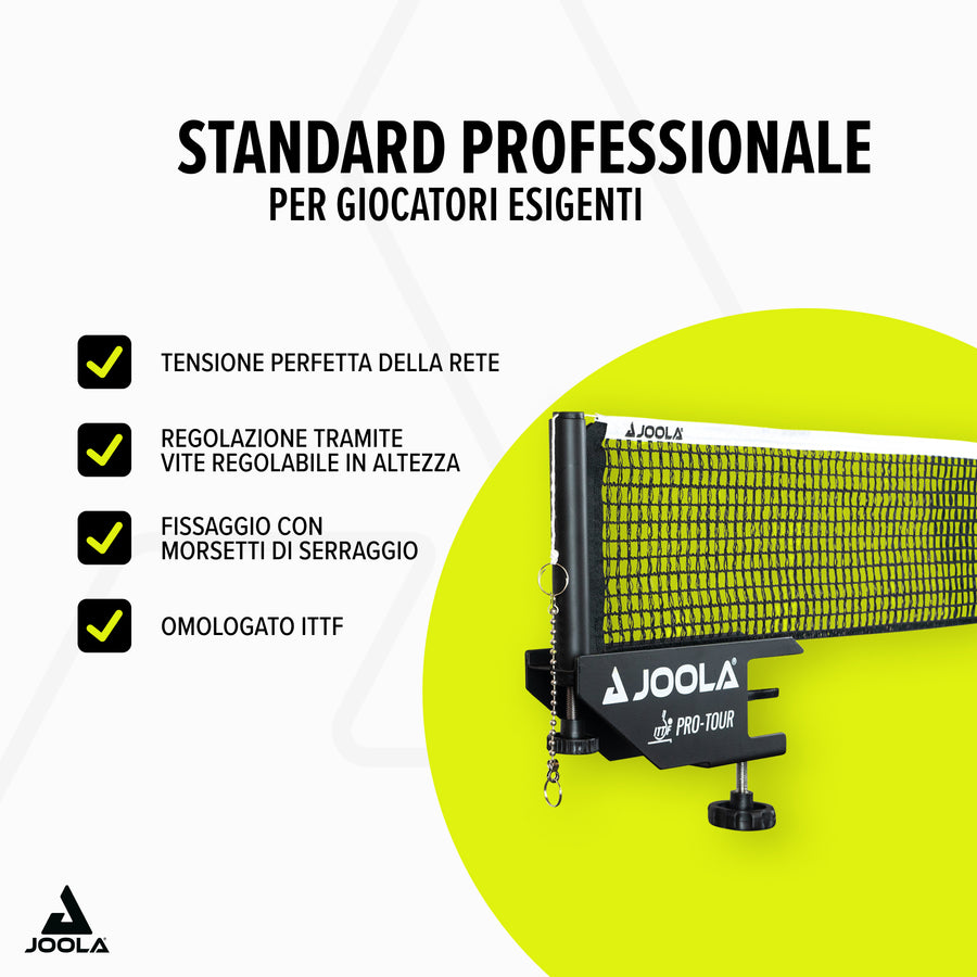 Vivi condizioni di gioco professionali con la rete JOOLA PRO TOUR – il set da competizione ideale per tennistavolisti esigenti!