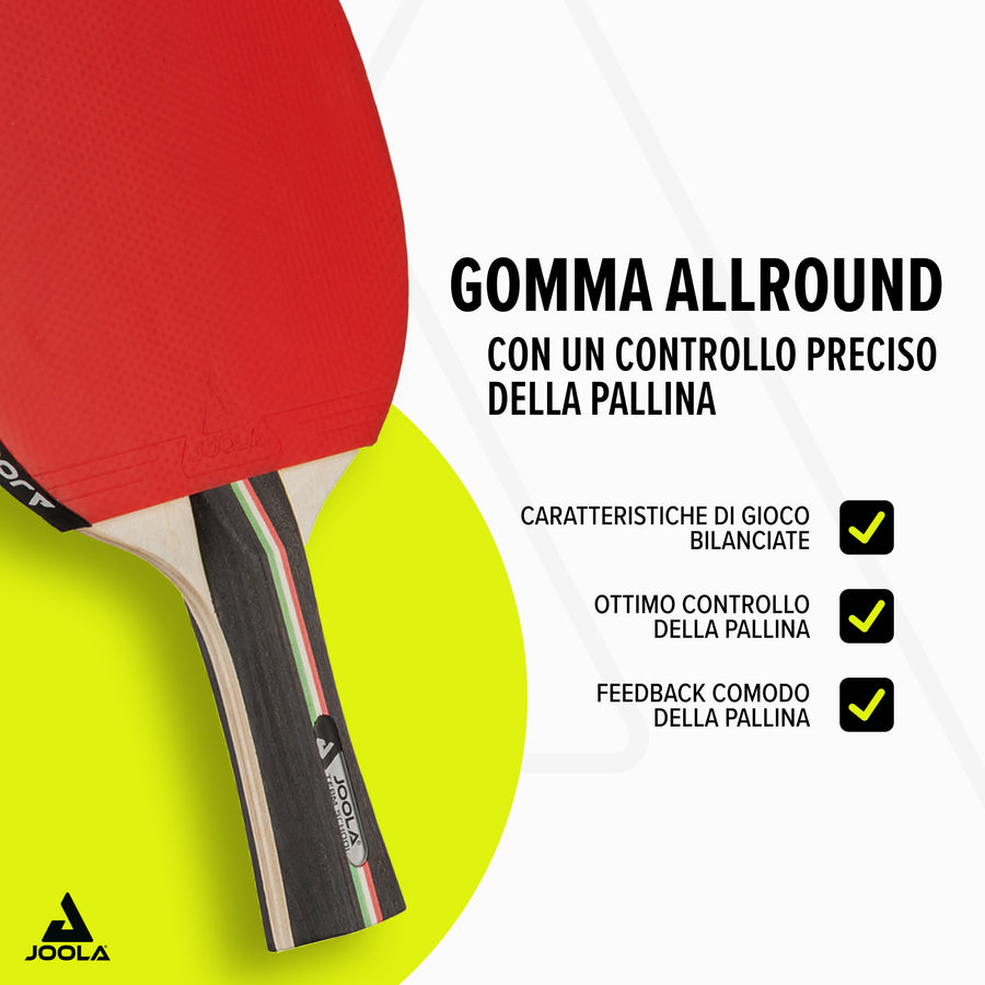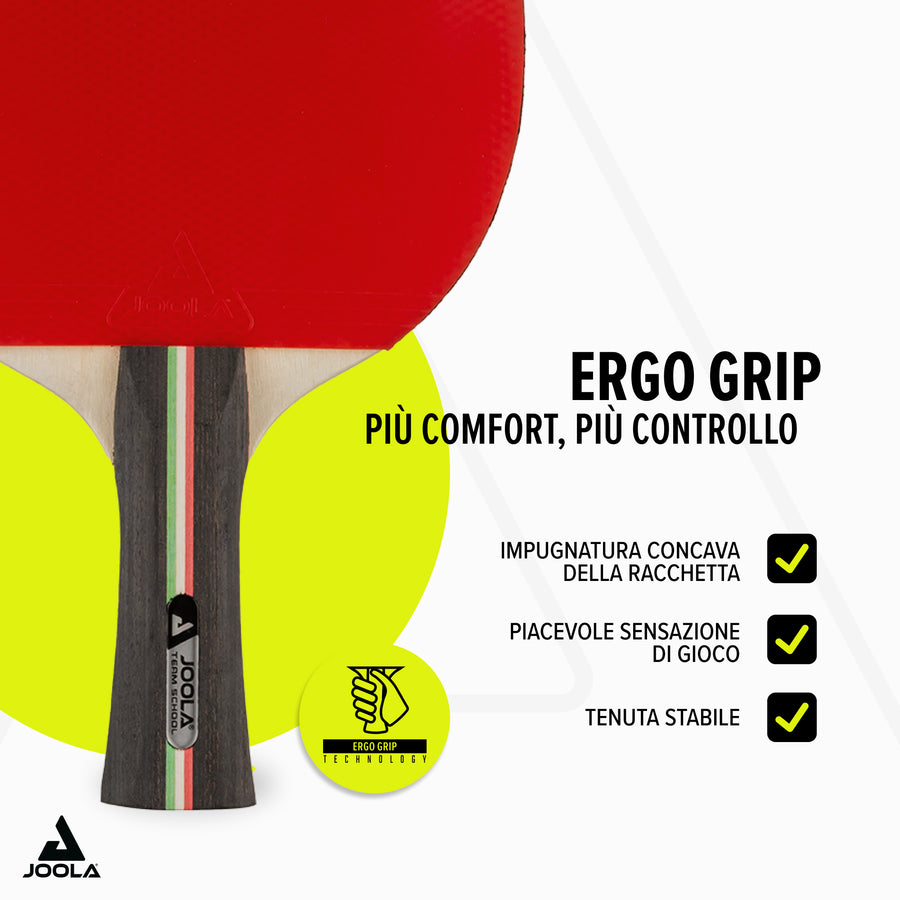 Con il set da tennistavolo JOOLA Team School IT giochi con stile! Lavorazione di alta qualità, design italiano elegante e una pratica borsa da trasporto lo rendono il compagno perfetto per ogni partita di tennistavolo.