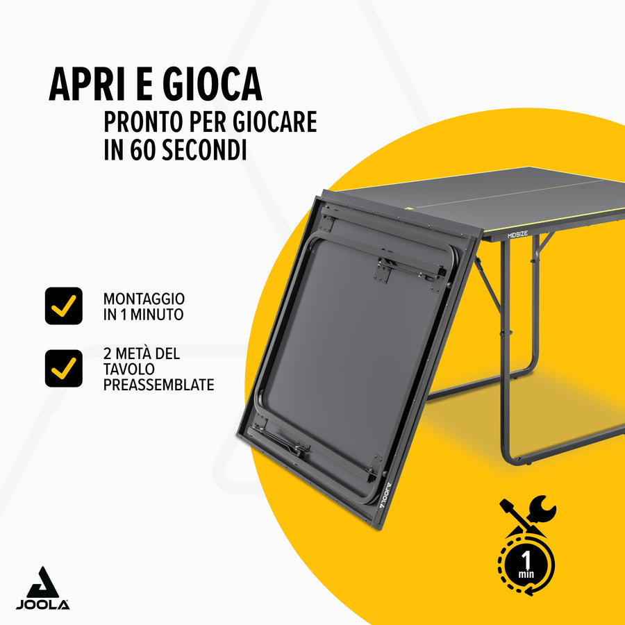 Vivi il divertimento su uno spazio ridotto con il tavolo da tennistavolo JOOLA Midsize – la scelta ideale per spazi piccoli e gioco veloce!