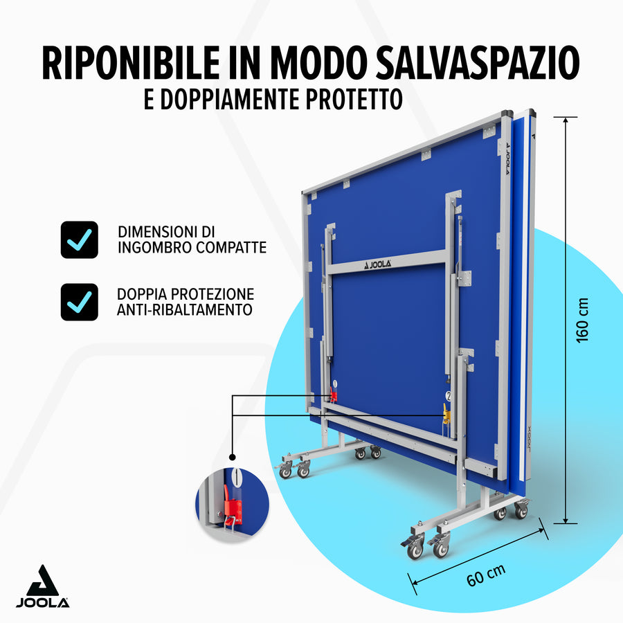 Il JOOLA J100X è più di un semplice tavolo outdoor – è il tuo partner affidabile per l’azione del tennistavolo in ogni stagione. Facile da montare, semplice da trasportare ed estremamente stabile – perfetto per famiglie, amici e tutti coloro che vogliono giocare all’aperto su grandi livelli.