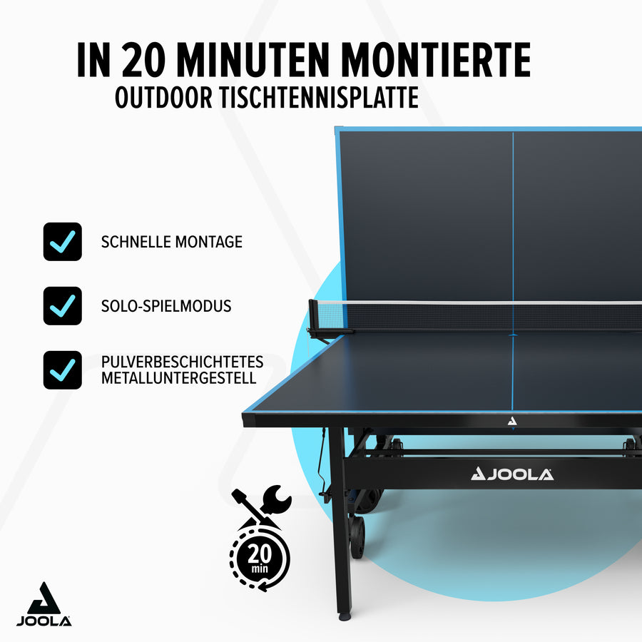 - Materiale composito in alluminio da 6 mm: La superficie del tavolo resistente alle intemperie assicura un rimbalzo uniforme della palla ed è perfetta per l’uso outdoor.
