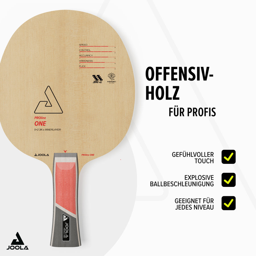 - Impiallacciatura esterna in Hinoki: il sottile e vivo legno pregiato offre una sensibilità di palla estremamente fine e ti supporta nel topspin con un’accelerazione esplosiva della palla.
